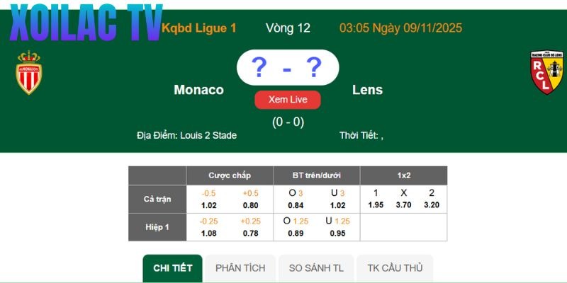 Bảng tỷ lệ kèo trận Monaco – Lens