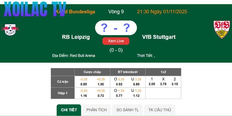 Bảng tỷ lệ kèo trận RB Leipzig – Stuttgart dưới đây sẽ mang đến cho bạn những đánh giá chính xác nhất.